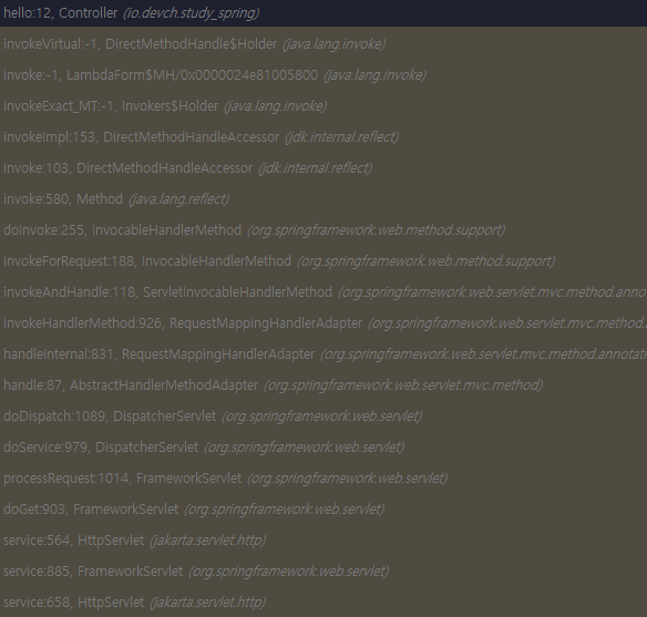 Get 요청을 했을 때 Spring boot에서 거치는 함수들의 목록이다.