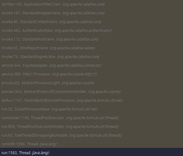 가장 먼저 Thread를 만드는 것을 볼 수 있다. 이후 SocketProcessor를 통해 TCP 소켓 연결을 한다. 실제 NioEndpoint 클래스의 SocketProcessor에서 소켓의 Handshaking 과정을 받아오는 것을 볼 수 있었다.